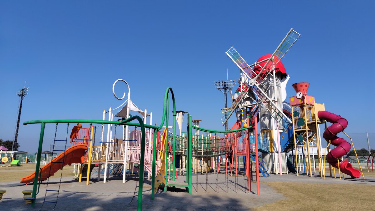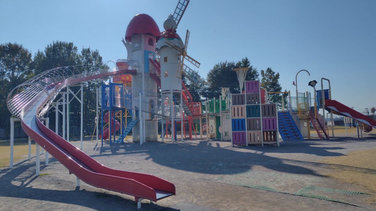 まるで無料の遊園地!真岡ハイトラ運動公園の最大の魅力は、圧倒的なスケールの大型複合遊具と「親の安心感」が両立している点です。